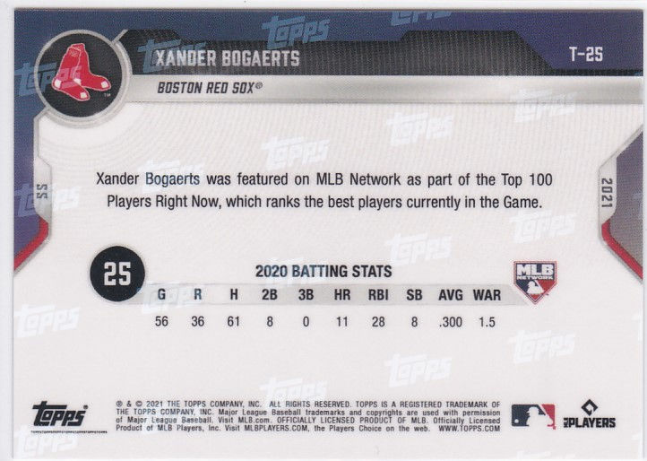 Xander Bogaerts 2021 Topps Now MLB Top 100 Players No 25 (Red Sox)