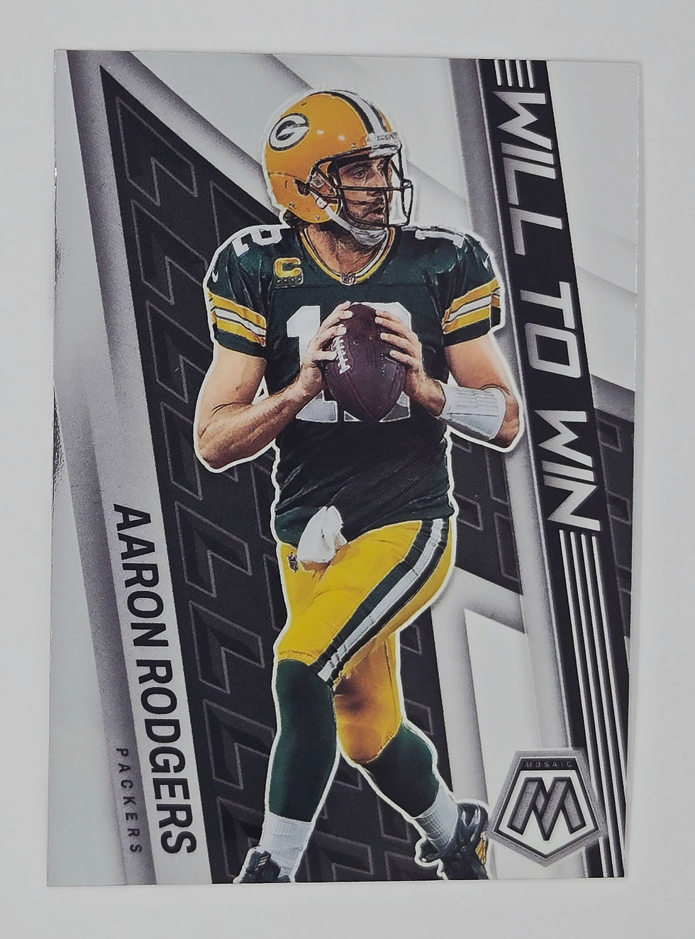 Aaron Rodgers 2022 Panini Mosaic Football "Will to Win" Insert Card No WW1 (GB)