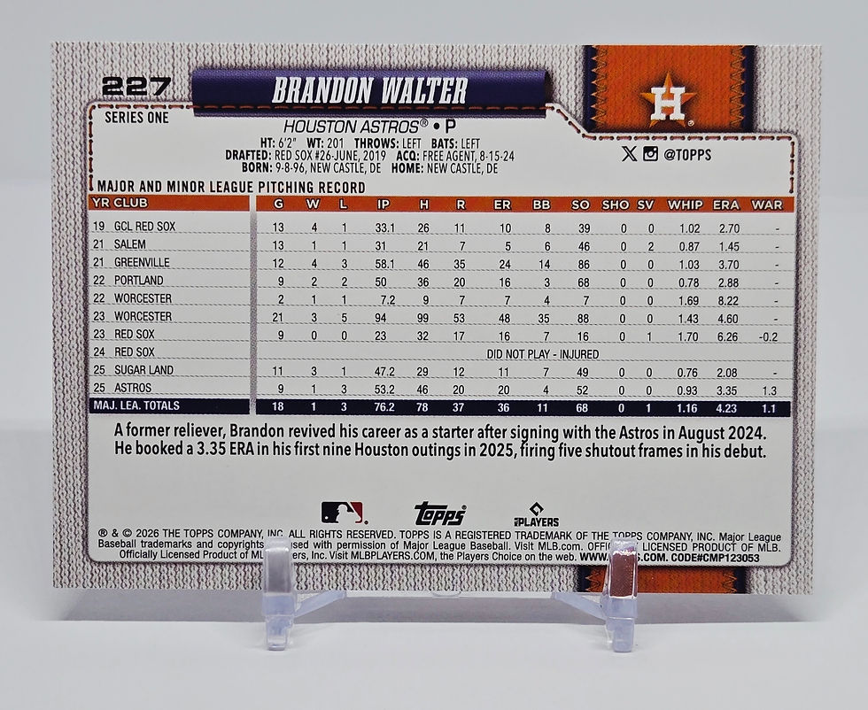 Brandon Walter 2026 Topps Series 1 Baseball Rookie Card No 227 (HOU)