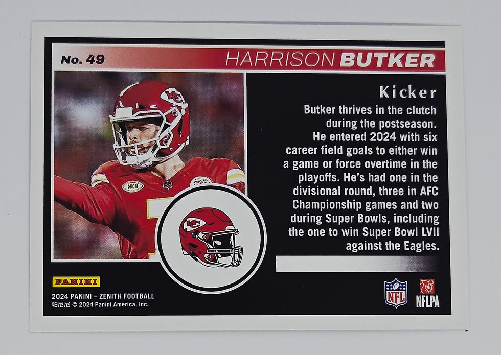 Harrison Butker 2024 Panini Zenith Football Rookie Card No 49 (KC)