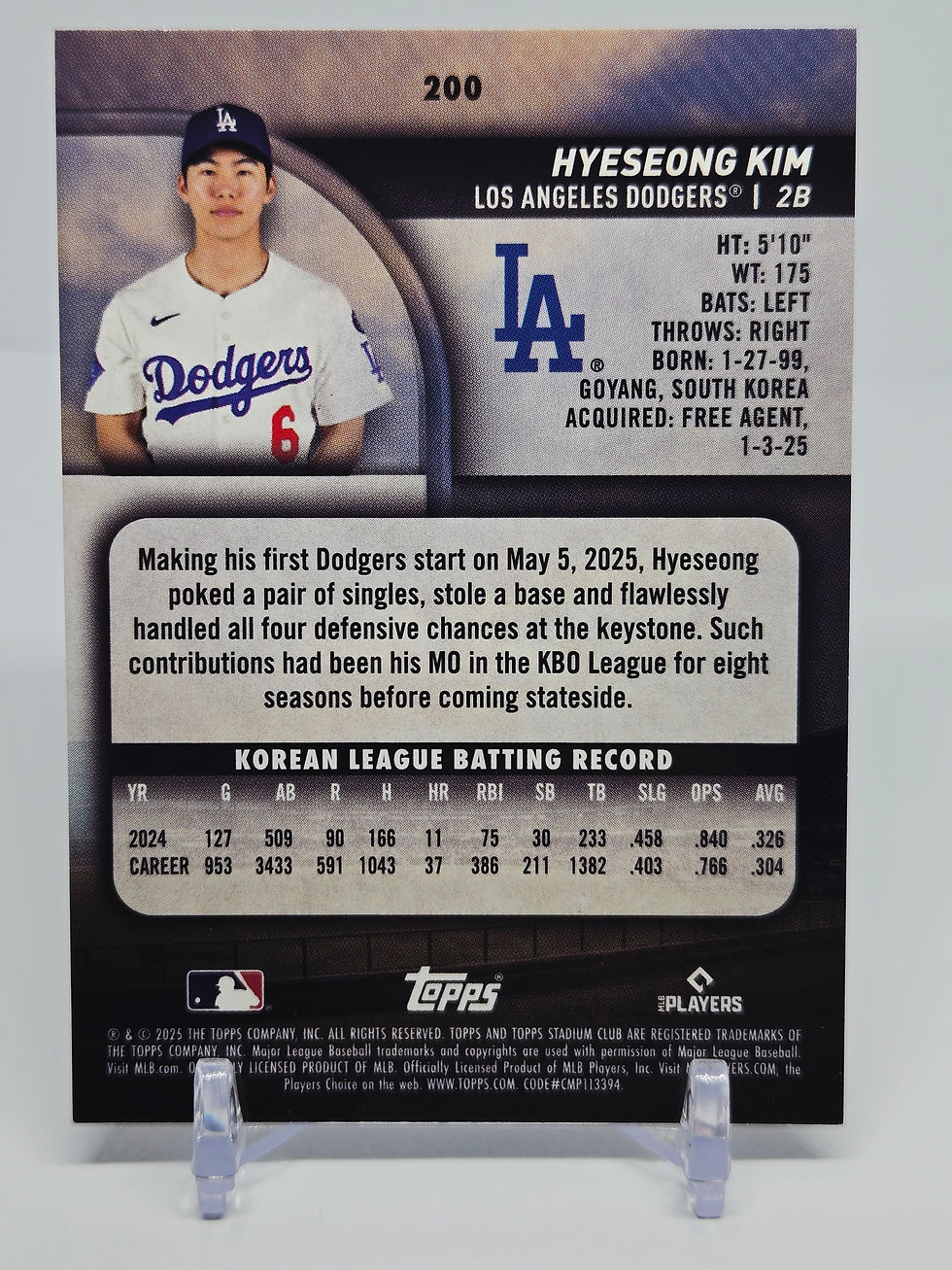 Hyeseong Kim 2025 Topps Stadium Club Baseball Rookie Card No 200 (LAD)